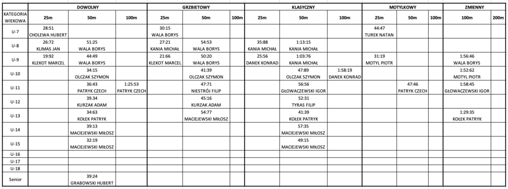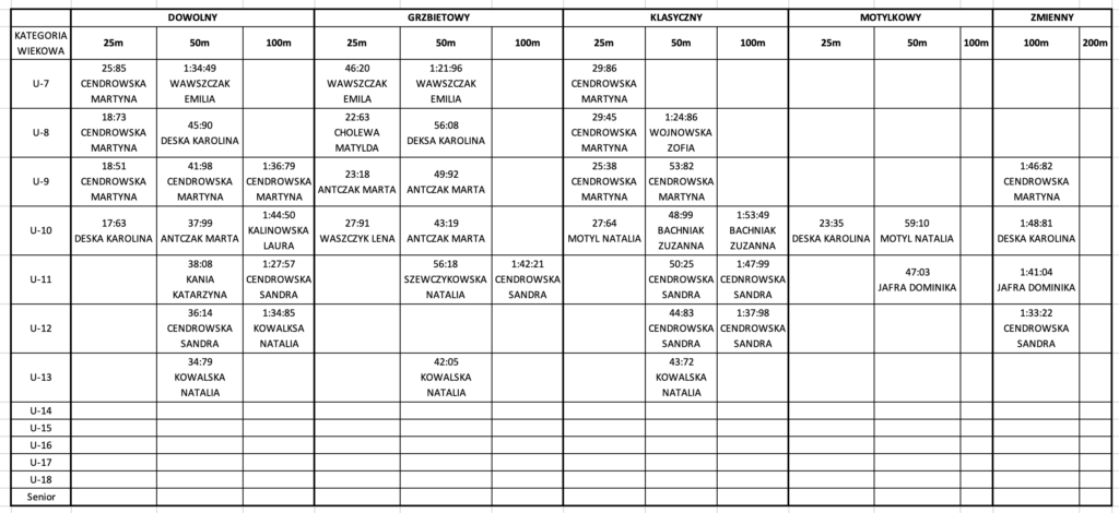 REKORDY KLUBU UKS „SWIM TEAM” CZĘSTOCHOWA